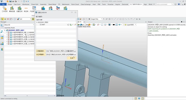 5、个性化功能开发:通过深入调研湖南红门产品结构及变化规则、以及设计流程存在的卡点问题,基于xelega3D平台开发了一套包含模型参数化设计、装配、BOM报表输出、工程图出图等功能的快速设计插件,工程师只需简单两三步操作即可得到整个项目的全部数据,快速输出数百套施工图纸。