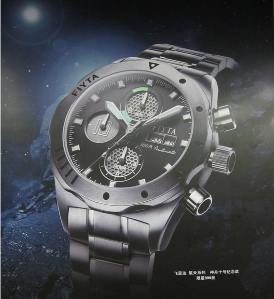 作为一家具有航空工业背景的国家级高新技术企业,飞亚达于2002年就参与了我国第一块航天手表的设计与制造,尔后更是出色地完成了神五到神九等神舟系列飞船航天表的设计及装配任务。2013年夏,伴随着神十成功飞天,飞亚达推出的神舟十号纪念款航天系列手表,向中国航天事业致敬。