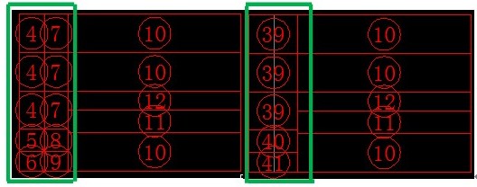 区域合并功能能够深度满足工程师在排版设计的实际需求。有时候由于一些突发情况,项目要进行设计变更,如原定的板材用不到或者板材形状不相符,那么板材的区域合并功能就可以轻松解决这一问题。如上图四所示,绿色标记区域的4号7号板材各3个,其余5,6,8,9板材各一个,合并之后,39号板材3个,40,41号板材各一个。软件能够根据不同板材型号自动进行排序,从而使区域和板材型号真正实现一一对应。
