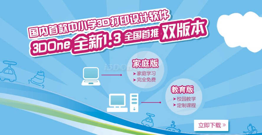 为了让更多青少年从家庭走向社会,更好地发挥知识科普及创新教育的角色,3DOne此次首次推出的3DOne家庭版,是校园教育课外活动的有效补充,随着中小学3D打印设计创意课程的逐渐实施,也将慢慢在全国范围内走进千家万户,涌现出众多的家庭创客,3D打印创新教育促进全民科技进步不再遥远。更多青少年3D打印资讯,请登录浏览中小学三维创意社区www.i3done.com