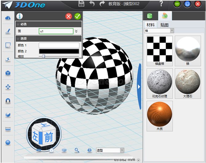 图2:3DOne教育版提供了应用乐趣:自由选择材质