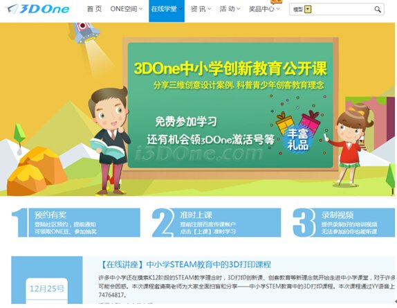 小编还了解到,不仅是3DOne软件本身具有众多适合青少年使用习惯的亮点功能,而且在其i3DOne社区上,还有系统化配套的中小学3D打印设计创意课程,包括在线学习公开课程http://www.i3done.com/news/school/train.html,而且还有大量的语音教学视频、教学案例、图纸模型,让学生可以即时参加线上培训,与名师互动探讨交流。3DOne家庭版和教育版均可畅享这些资源,在爸爸妈妈的指导下体验3D创意乐趣。