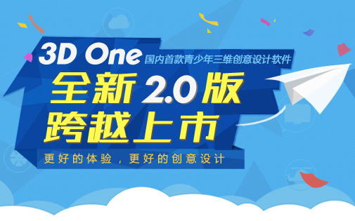 想不想把心中的宇宙飞船画出来?是不是迫不及待要把自己设计的创意3D打印出来?有没可能把课本里出现的有趣物品带到现实?自青少年三维创意设计软件3D One 1.0诞生以来,已经帮许多校园创客们实现了这些创意梦。如何让创客们更随心随意的开拓新玩法,也是3D One 一直努力改进的方向。为此,重点提升用户体验的新一代3D One 2.0应运而生,跨越上市!