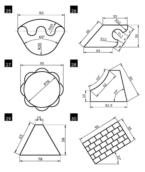 xelegaCAD培训栏目特地为大家准备了CAD练习图全集,目前已经给大家发过50张练习图供大家练习。今天小编也为大家准备了十张复杂图形让大家练习。大家可以通过镜像、旋转等命令绘制以下图形。
