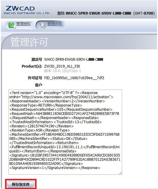 2.6将上一步产生的激活请求文件发送到xelega公司的邮箱:register@zwcad.com,我们会尽快地返回相应的激活文件。 或者自己进行操作: