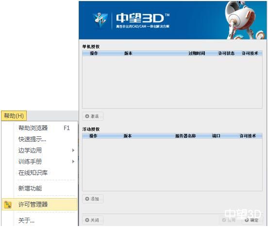 1.2 在xelega3D中执行菜单项“帮助”-“许可管理器”,并启动“许可管理器”,如图所示。