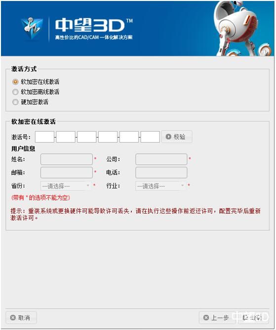 3. 重装电脑或更换硬件前请务必返回激活号,否则激活号失效
