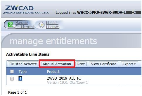 ④. 在管理授权页面,勾选所需激活项目,并点击“手动激活(Manual Activation)”。