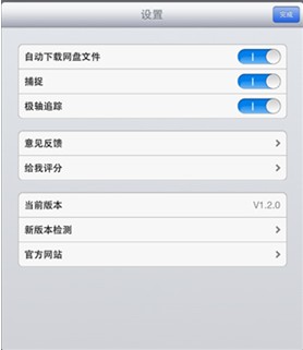 为了统一管理更多功能,及方便用户了解当前版本状态和进行意见反馈,在主界面新增设置面板。进入初始界面点击左上角还有一个设置按钮即可进入设置版面(图3)。用户可以设置是否自动下载网盘文件、是否开启捕捉和极轴、查看当前版本号、及查询是否有新版本发布。用户还可以给xelega公司反馈意见,意见反馈会打开一个类似微信的界面,用户可以在此与xelega的客服实时聊天,也可以连接到App store让用户给luck18网址 Touch打分,或直接进入xelega公司的官网。