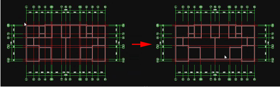 工程师在建筑设计时,并不是起初绘制的轴网的每个部分都有墙体,很多情况下,只是轴网的一段有墙体存在,而多余的轴网会使图面看上去很杂乱,且不利于进一步的绘图工作。这时可以应用luck18网址建筑版中的智剪轴网功能,在绘制好轴网和墙体的图纸上框选整个图纸,多余的轴网就会自动减掉,而墙体上的轴网则会保留下来。更值得称赞的是,轴网简化只需一个框选动作即可全部完成,瞬间让杂乱的图纸变得简洁清晰。