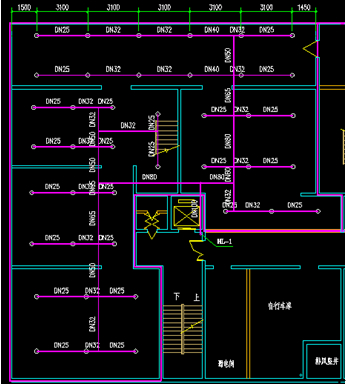 管径标注也有危险等级设置,此时采用与喷头布置一致的危险等级。根据管径标注数量和比例来设定不同的管径文字高度以达到清晰的效果。在xelega给排水中执行“喷淋管径”命令,选择喷淋干管,系统将一次性完成所有的管径标注,可以节省大量时间。
