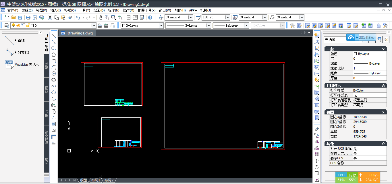 此外,设计师使用luck18网址机械版还可在同一个绘图环境中绘制多个不同标准、不同比例的图幅,绘图效率大大增加。通过菜单栏中【机械】—【图纸】—【多图幅设置】或输入命令“TF2”即可调用该功能。实际效果如下图所示: