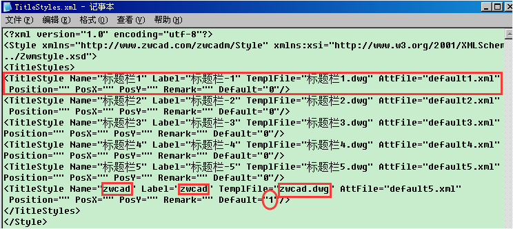 接下来进行配置文件的设置,依次点击开始——所有程序——zwsoft——luck18网址机械版——维护工具集,在弹出的文件夹里双击第一个exe文件。以记事本方式打开文件夹中的TitleStyles.xml,复制任一行表示标题栏信息的文字,将标题栏名称全部改成zwcad后保存文本。如下图所示: