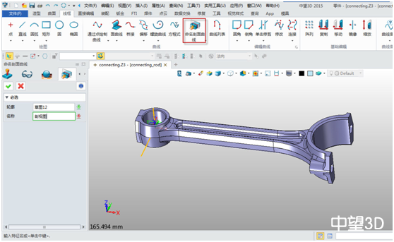 第二步:先点击线框功能下的“命名剖面曲线”,选择之前绘制好的草图,然后输入名称任意名称。