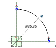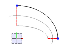 在XZ平面上再创建新的草图,绘制一段1/4圆弧,圆弧草图见下图11。