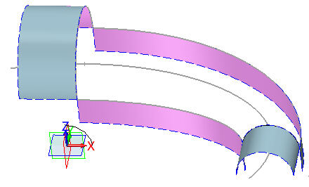 完成修剪后,以两条桥接线为基准,分别拉伸出两个曲面,如下图20、图21所示。