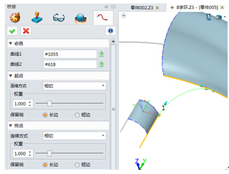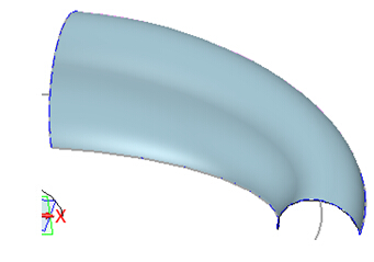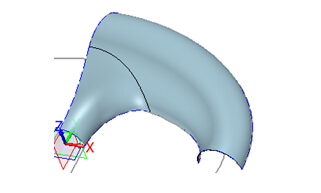 使用U/V曲面功能,创建中间的连接面(图22),而辅助相切面则可以通过新建图层的操作,对其进行隐藏,效果如图23所示。