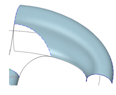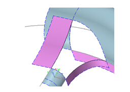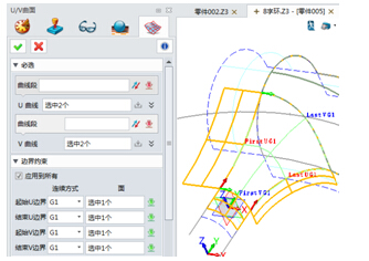 使用U/V曲面功能,创建与四个拉伸面相切的四边面,如下图9、图10所示。