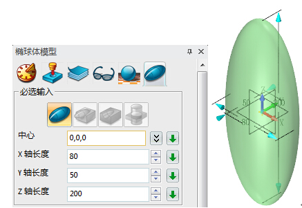 椭球体中心在“绝对零坐标”上,尺寸为: