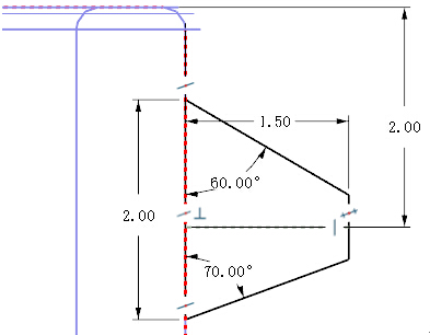 以工作平面“XZ”为基准面创建螺牙草图,具体尺寸如下图: