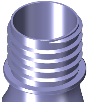 瓶口的螺纹在这个设计里是一个难点,尤其是螺纹的收尾,使用xelega3D,可以一个命令全部完成这些设计操作。