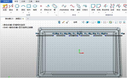 点击“插入草图”,进入草图绘制要拉伸的轮廓,详细尺寸参数参考图24。