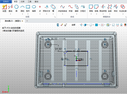 完成了路由器的主体设计之后,那么接下来,我们就来对路由器散热孔的接口等细节特征进行设计。