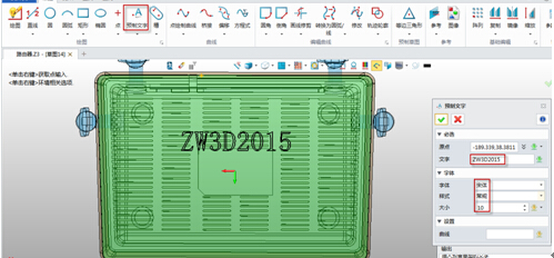 进入草图点击“预制文字”,输入文字、样式、大小等信息,完成后点击退出,图35为效果图。
