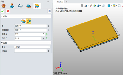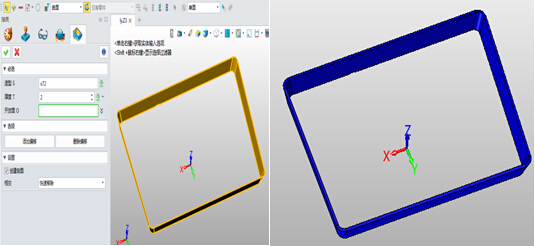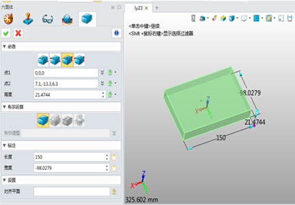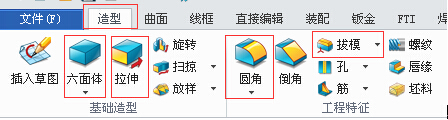 直接运用xelega3D中“造型”模块的“六面体”、“拔模”、“拉伸”、“圆角”这几项功能(功能键界面如见图2),直接完成主体部分的设计,而不用设置繁琐的参数,设计非常高效(图3-图5)