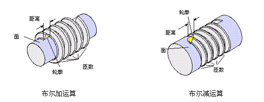 图2 操作螺纹命令时,布尔加减运算的不同效果视图
