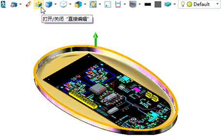 第二步:完善上盖底部设计。开启“直接编辑”,拾取底面,增加“5mm”厚度,效果如图4所示。