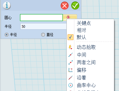 ,圆心选择曲率中心,输入半径50,绘制如图: