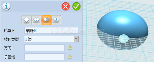 6、选择特殊造型,点击拉伸,选择圆形,输入拉伸高度-5,可得:
