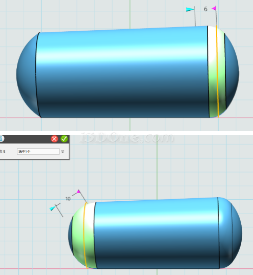 选择圆角命令,在顶部位置添加圆角,半径为1.5
