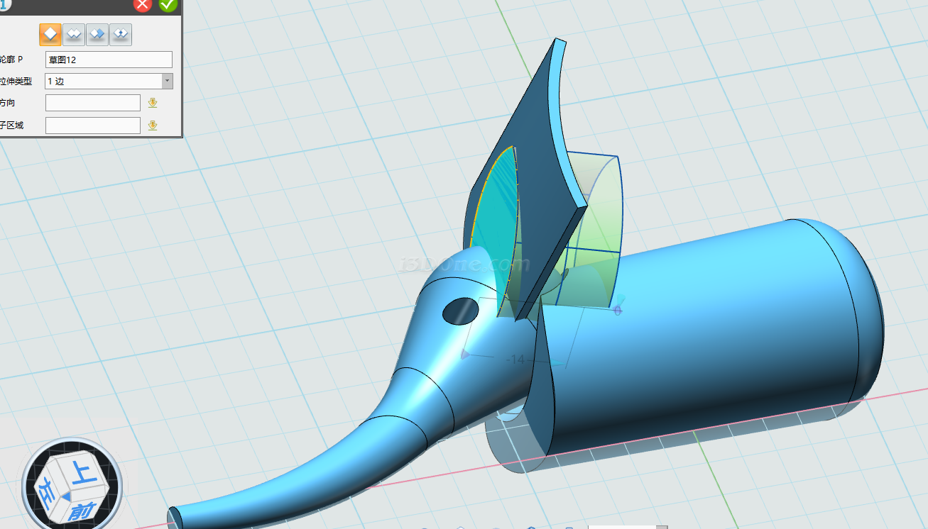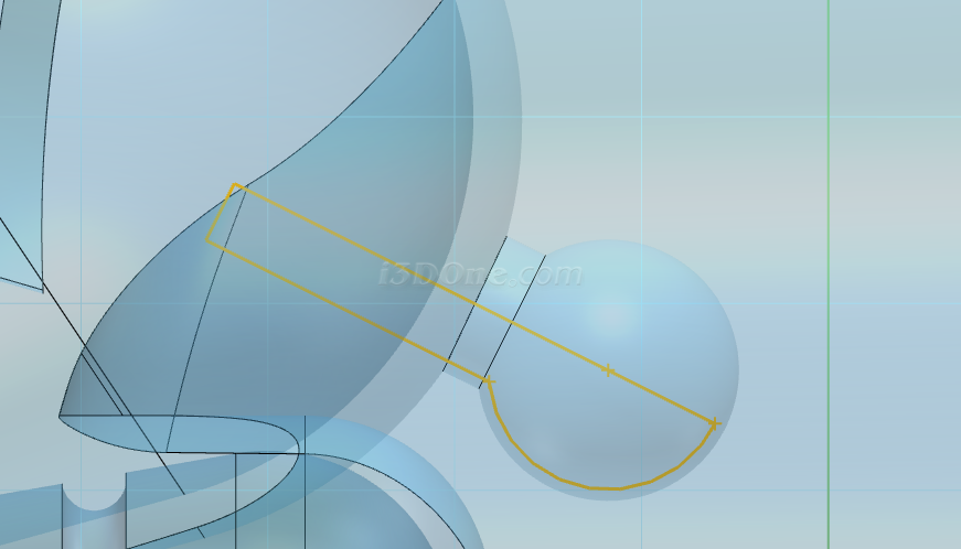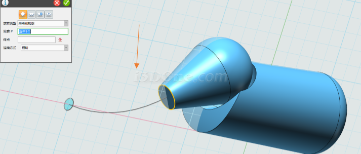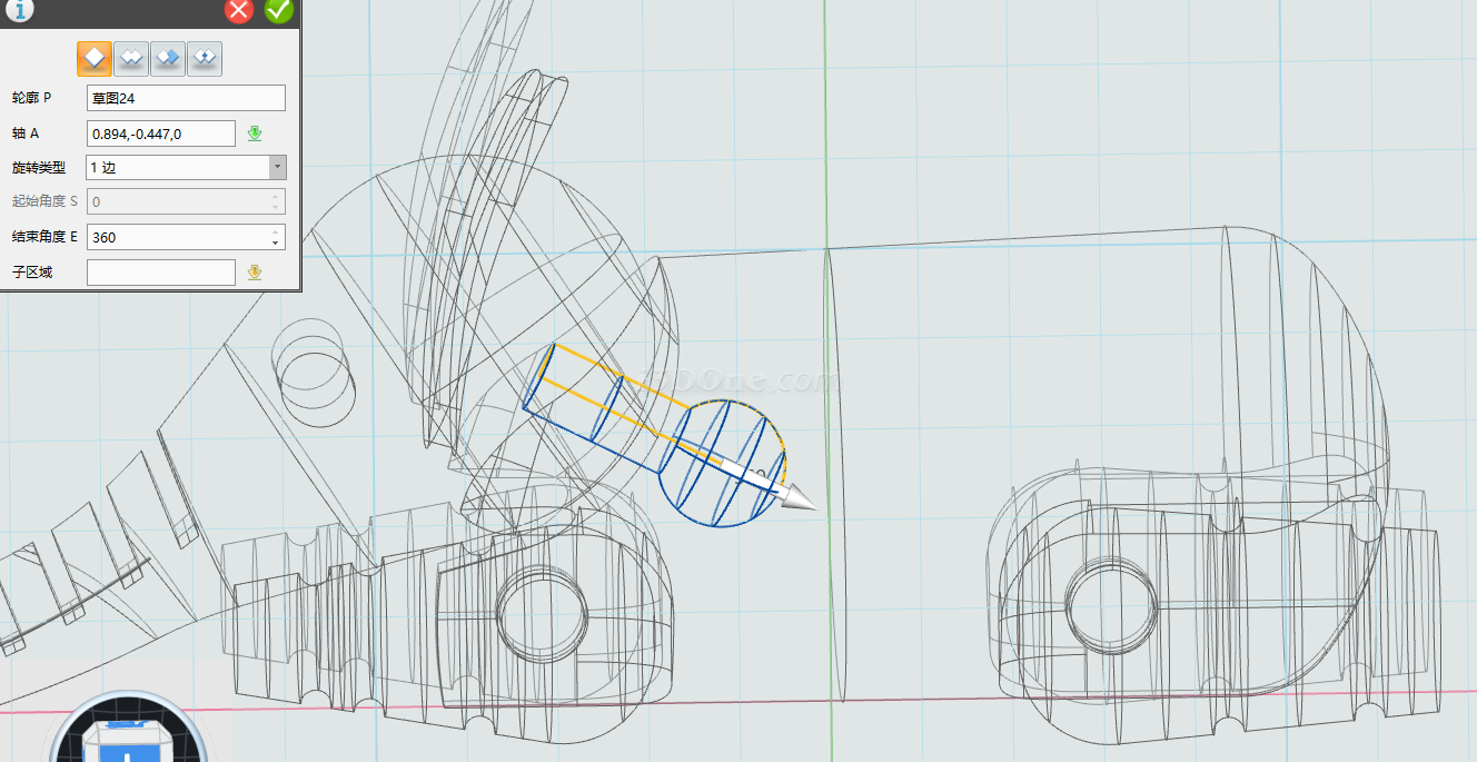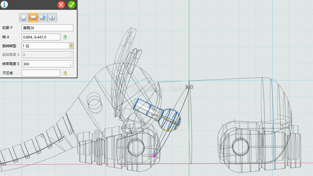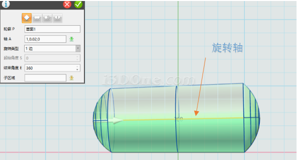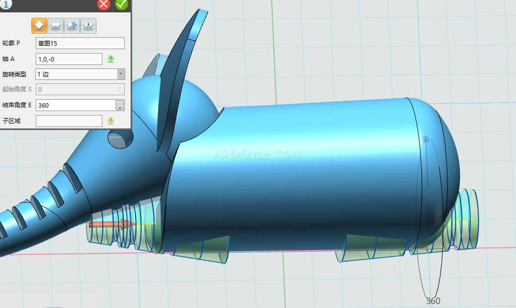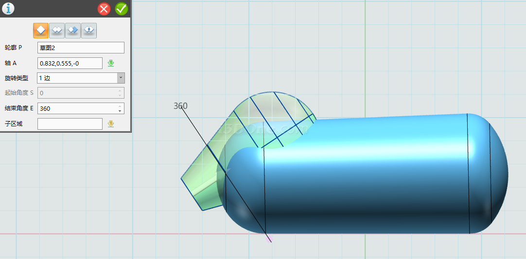 绘制完草图,选择旋转命令,选择草图,如图: