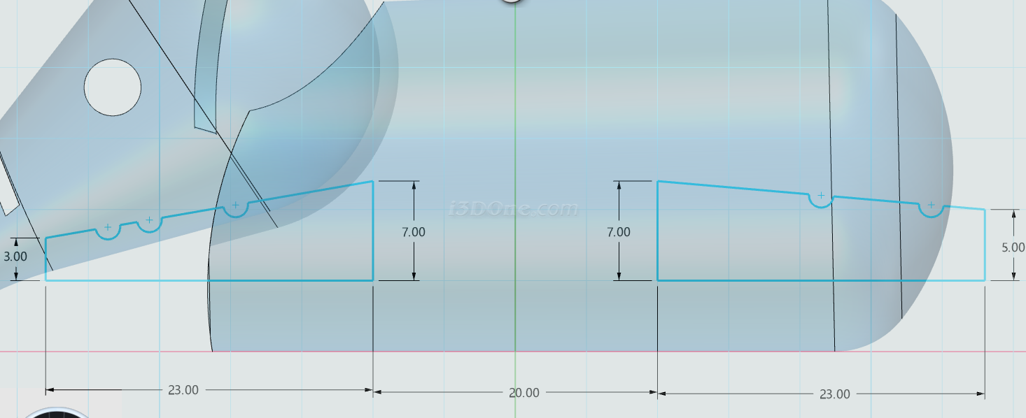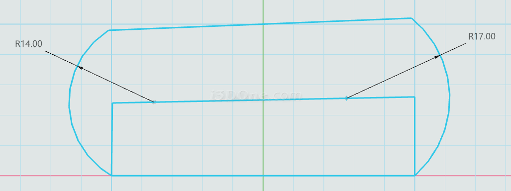 选择圆角命令,在如图所示位置添加圆角,圆角大小为3,(对称位置也要添加)如图:
