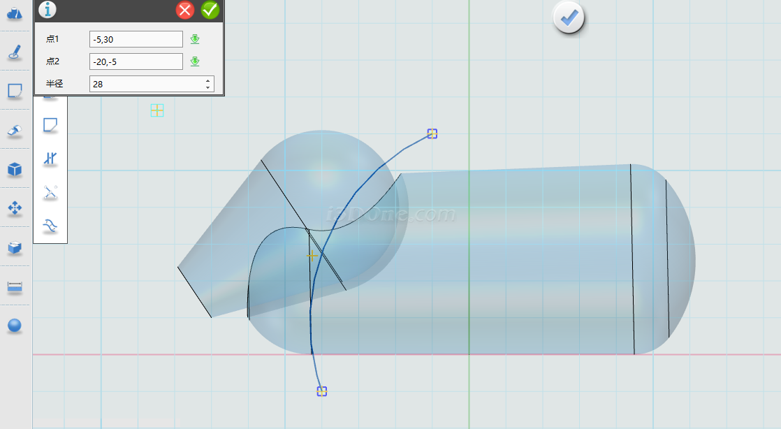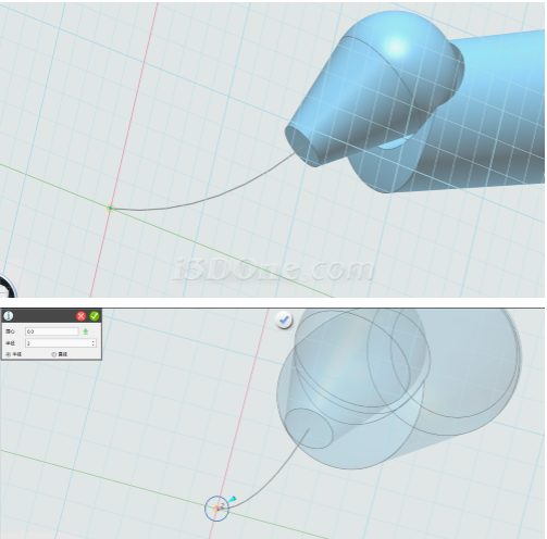 确定,完成圆柱折弯。