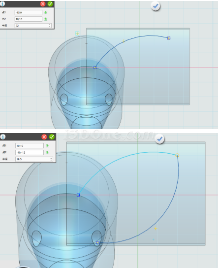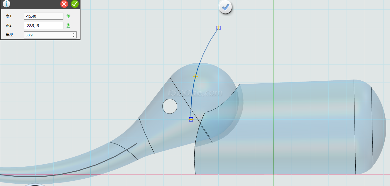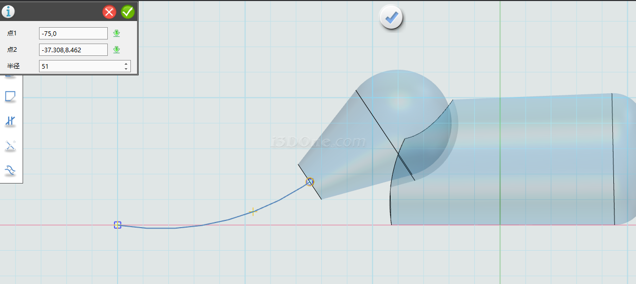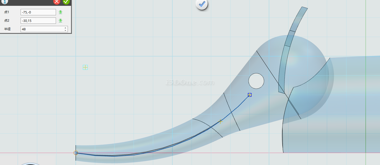 在草图平面上绘制图图形,如图绘制圆弧