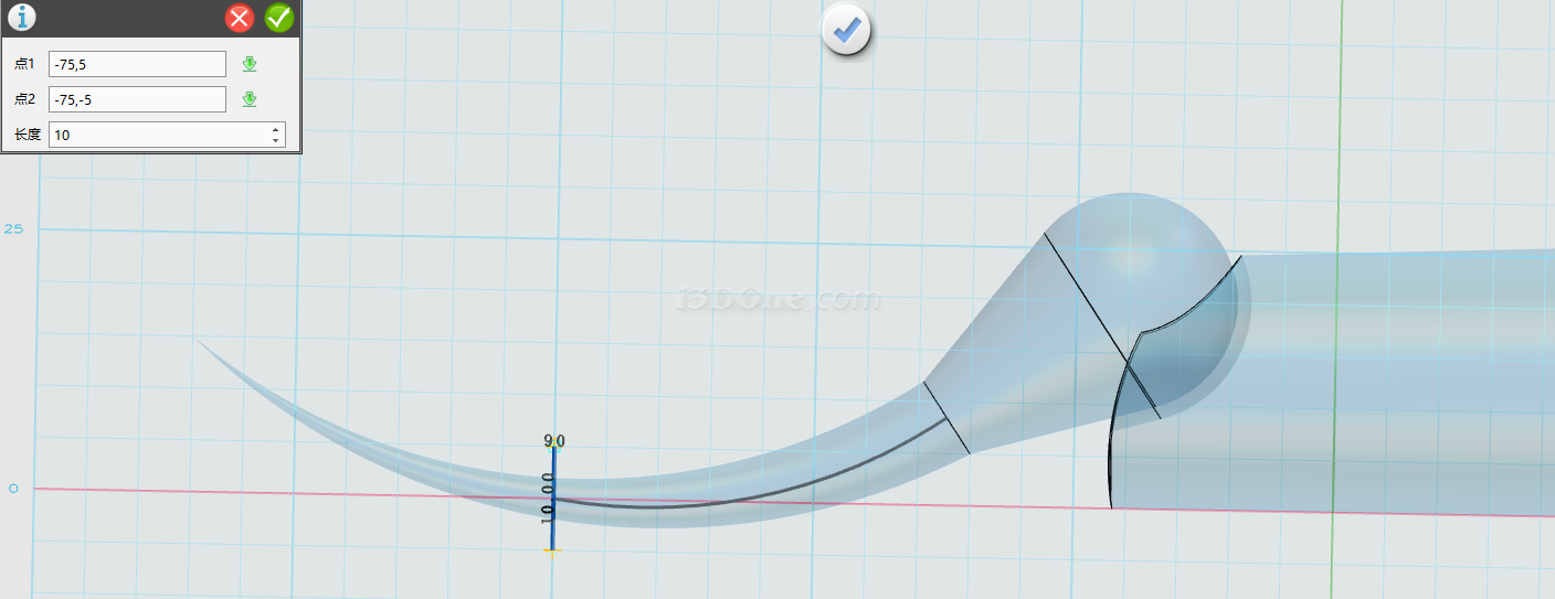 在网格平面上绘制草图,图像如图所示: