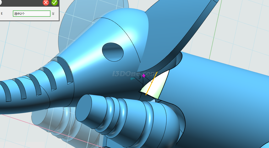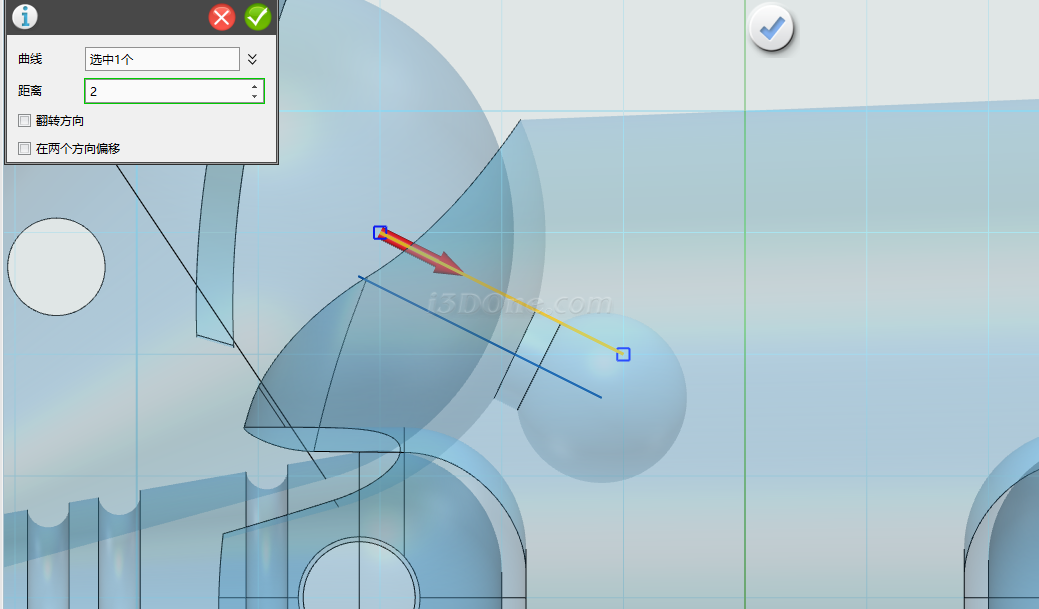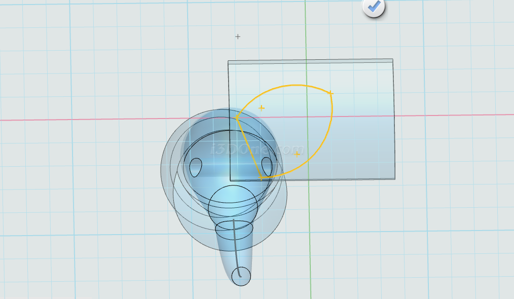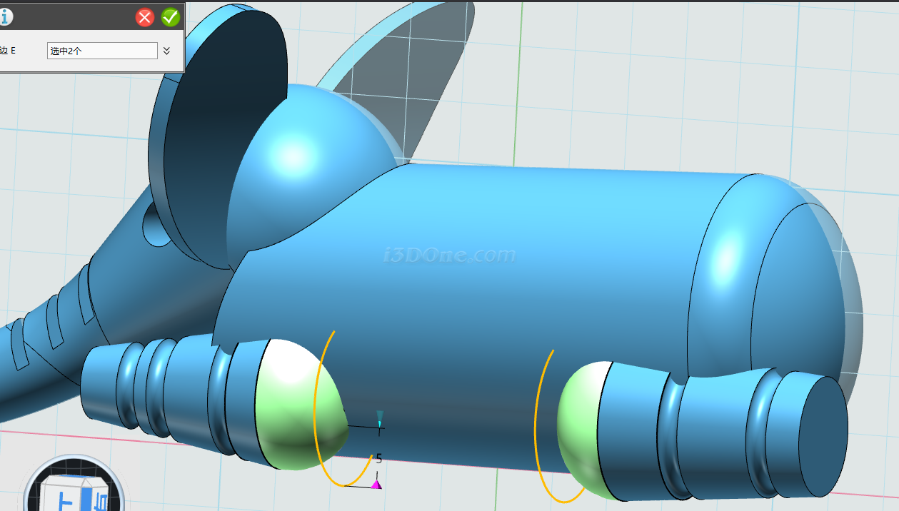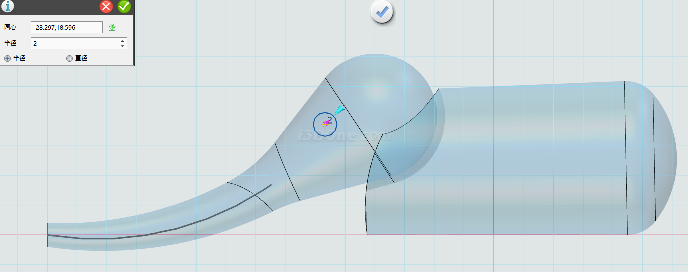 选择圆弧命令,在耳朵所在面的近似中间位置绘制,如图:
