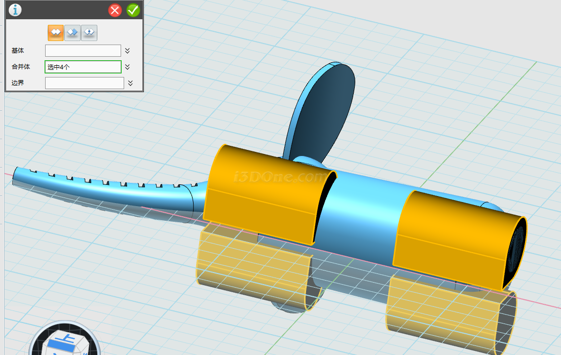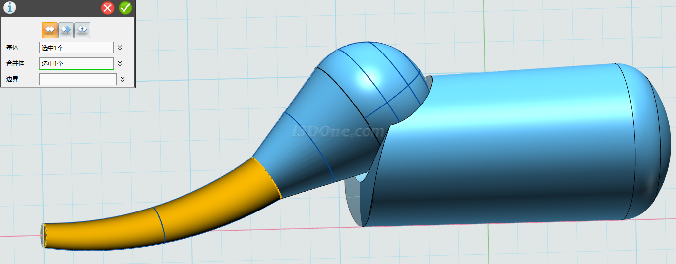 布尔运算设为减运算,完成合并,如图: