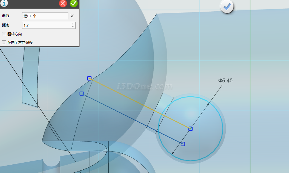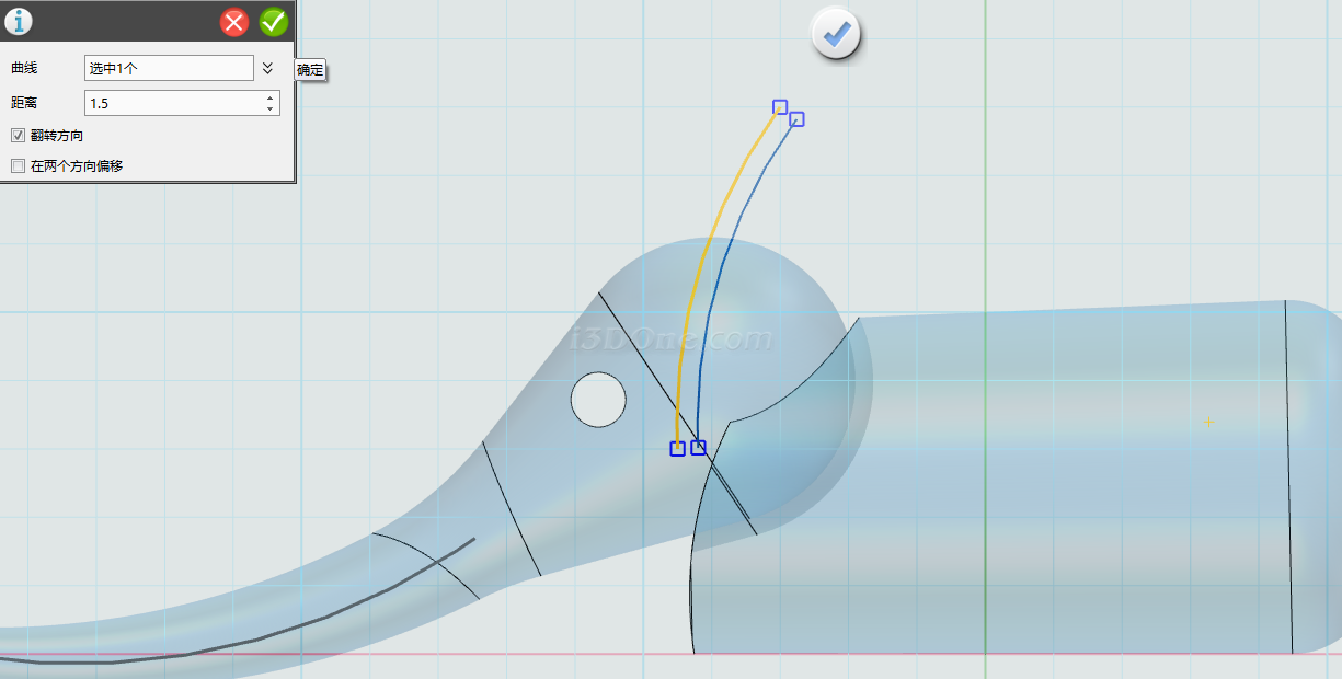 选择偏移命令,偏移距离为1.5,方向如图