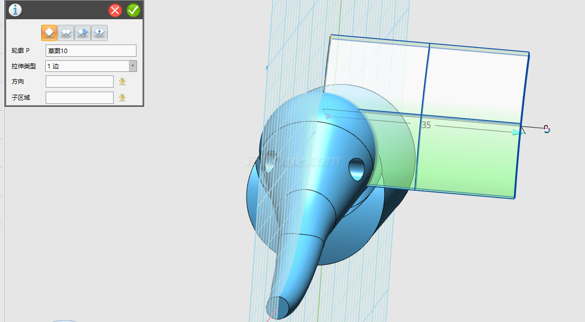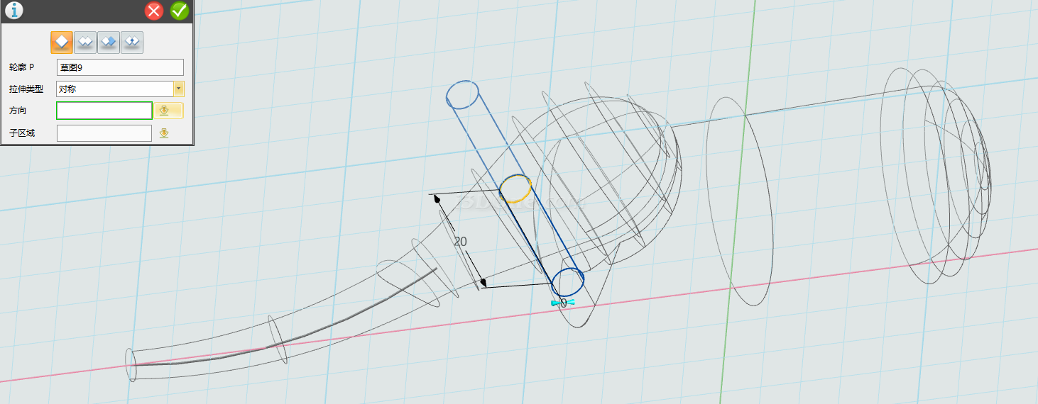 拉伸类型设为对称拉伸,长度为20