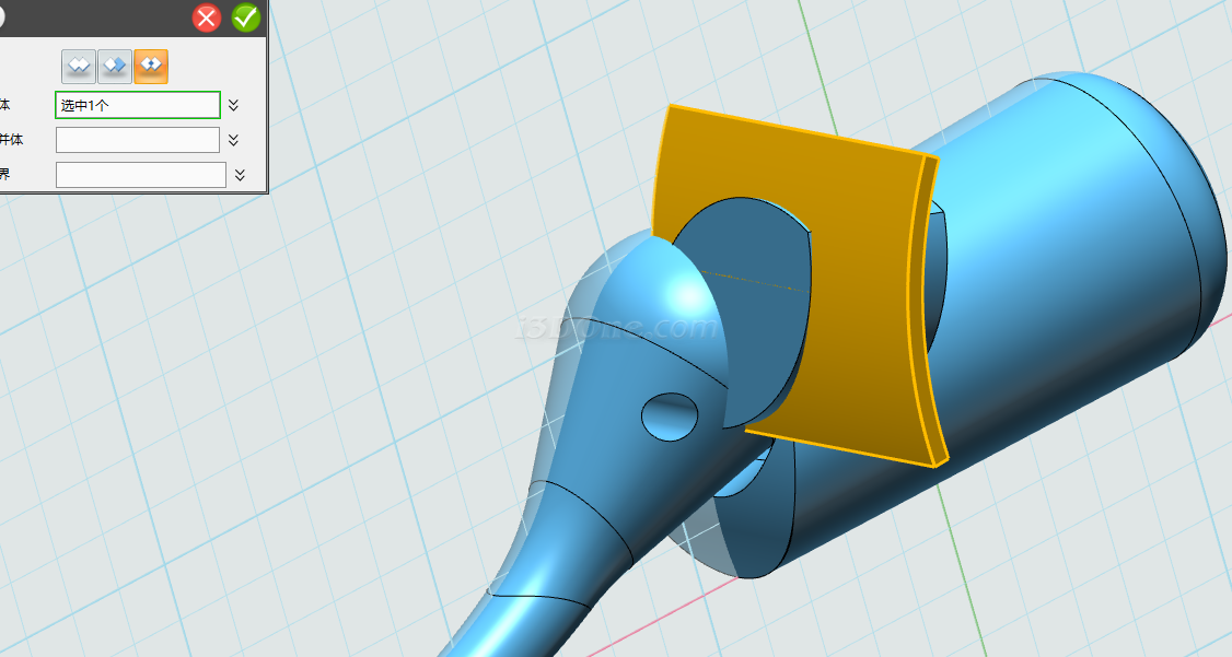 完成拉伸,选择组合编辑命令,基体选择如图所示,