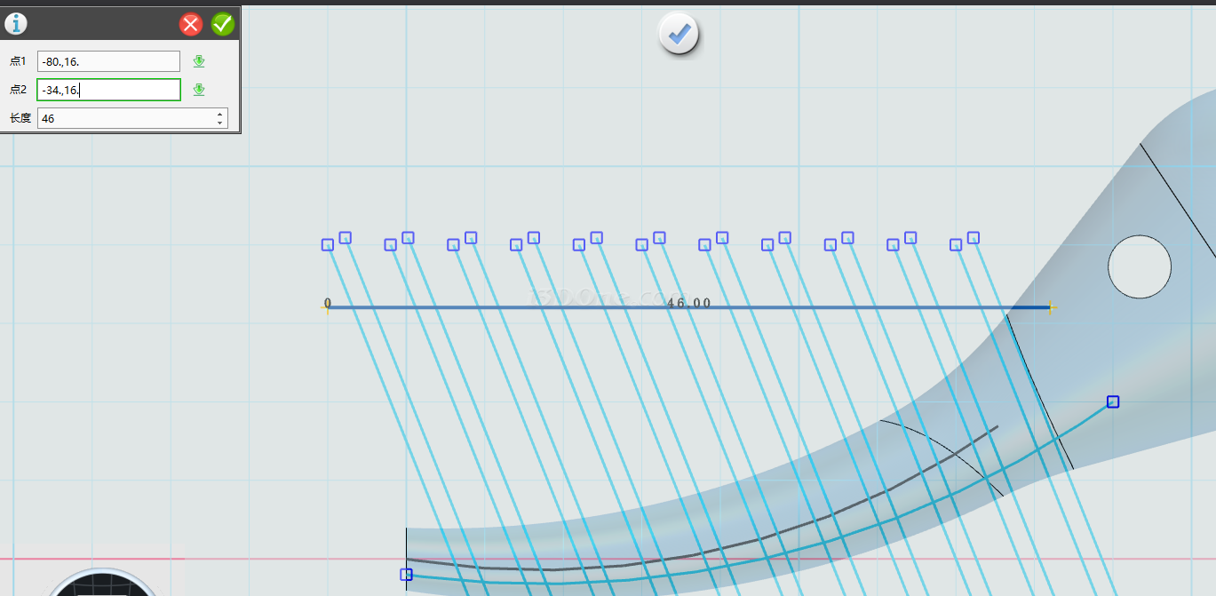 选择曲线修剪/延伸命令