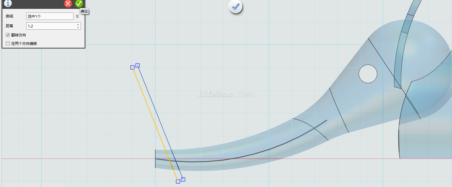 选择偏移命令,偏移距离设为1.2,如图所示