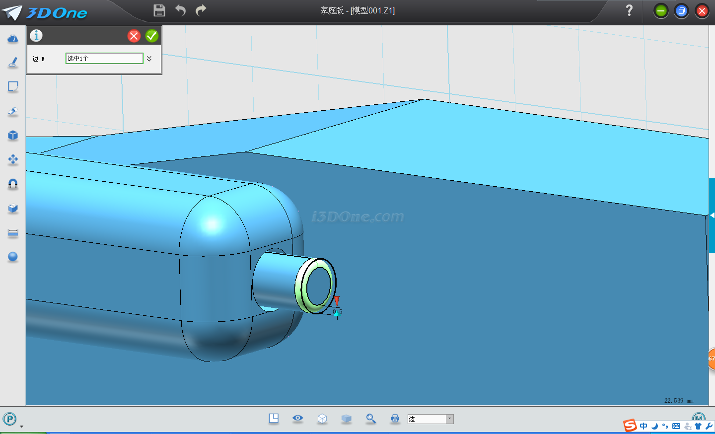 18.在两个实体面中间建一个圆柱,再点击倒圆角命令 ,选择圆线。