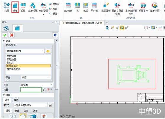 1.首先进入工程图模块,在操作窗口右键快捷菜单选择2D工程图