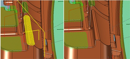 大家可以看到下面对于刀轨的圆弧大小也变大了,省去了我们重新改圆弧并且计算的时间。