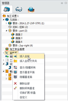 ①首先在左侧管理器中,右键点击坐标系,选择插入坐标。